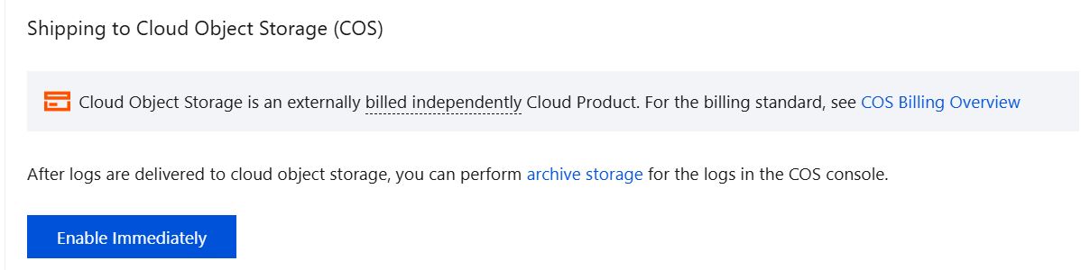 6. ポップアップされるサイドバーで、COSオブジェクトストレージへの配信の下にある今すぐ有効化をクリックします。