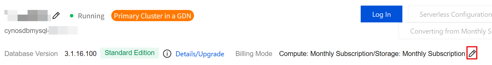 マスタークラスタのストレージ容量課金モード | スレーブクラスタのストレージ容量の課金モード | 構成変更ポリシーの説明 |