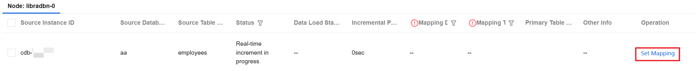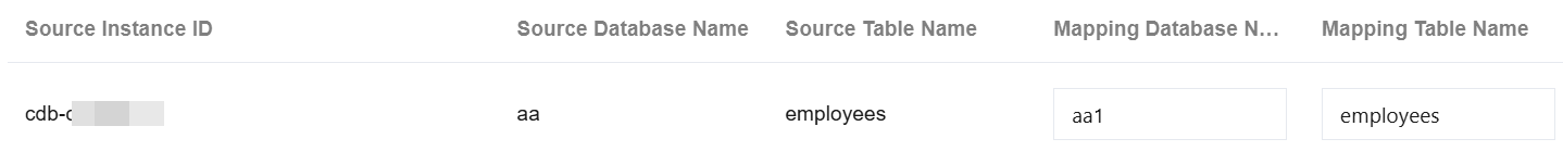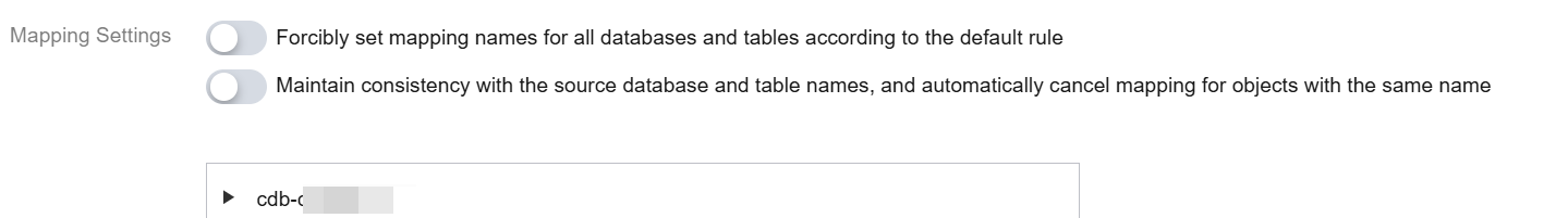 デフォルトルールに基づきすべてのデータベース/テーブルマッピング名を強制設定:デフォルトルールでは、分析クラスタに同期されるすべてのデータベースは「データベース名_インスタンスID」形式で命名されます。例:データベースdatabase1のソースインスタンスがcdb-af321a3の場合、このボタンを有効にすると、このデータベースのマッピング名は「database1_cdb-af321a3」となります。