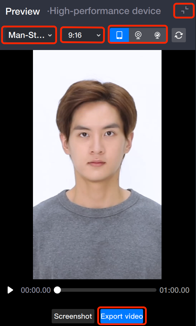Tencent Effect の作業エリアは、複数のモジュール化パネルで構成されています。作品の編集や制作の主要な領域であり、すべてのパネルはサイズ変更が可能です。プレビューパネルは非表示や展開にも対応しています。