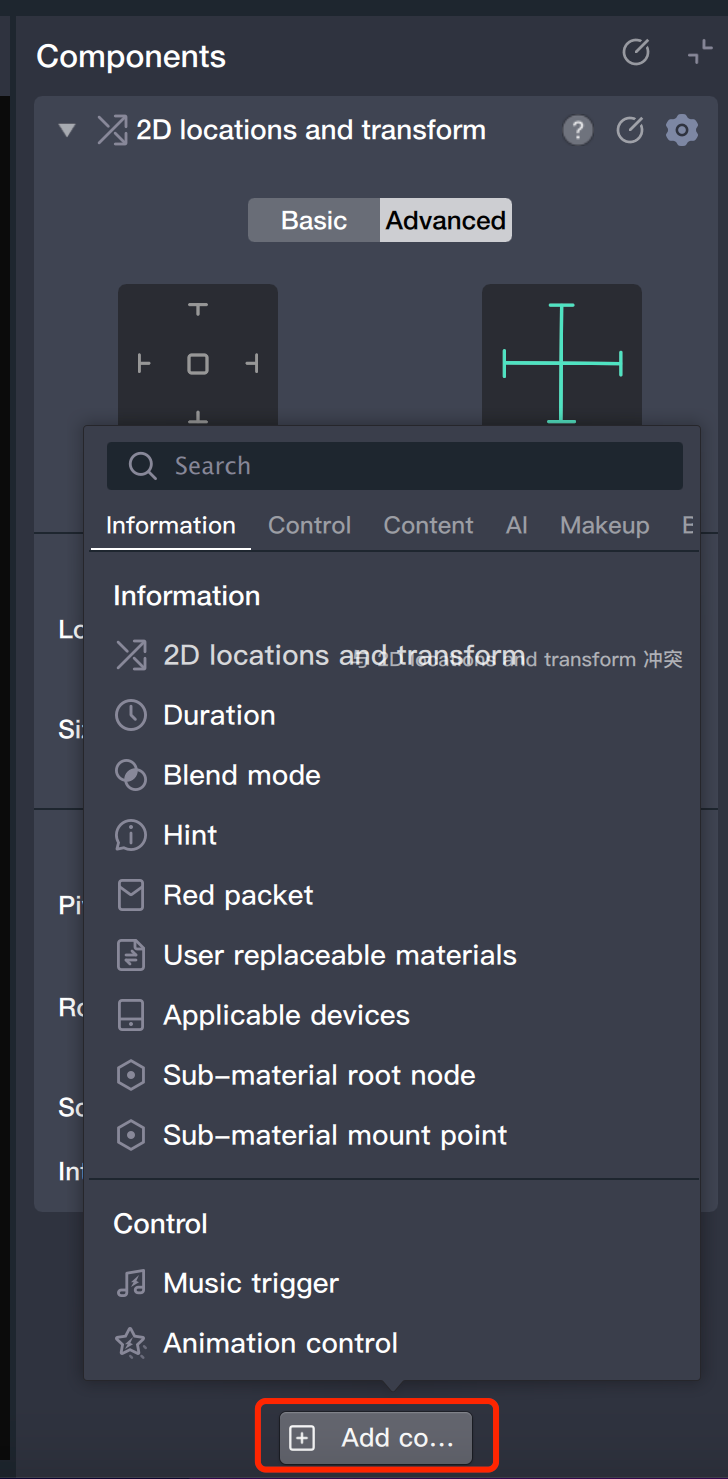 また、新しいコンポーネントを追加し、選択したオブジェクトへ付与することも可能です: