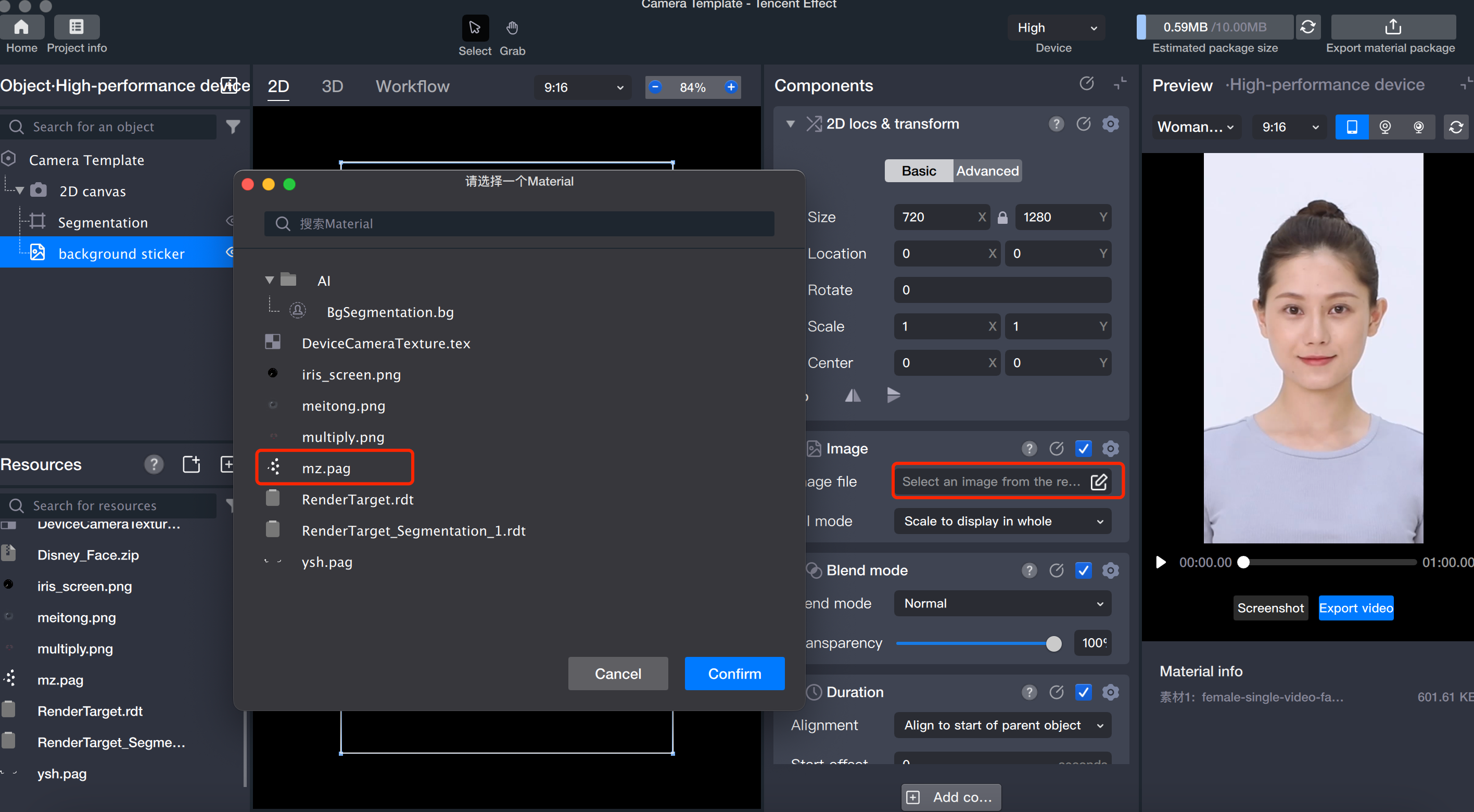 2. ステッカーファイルを選択します。前景ステッカーを選択し、画像ファイルをクリックして、RenderTarget_Segmentation_1.rdtファイルを選択してください。