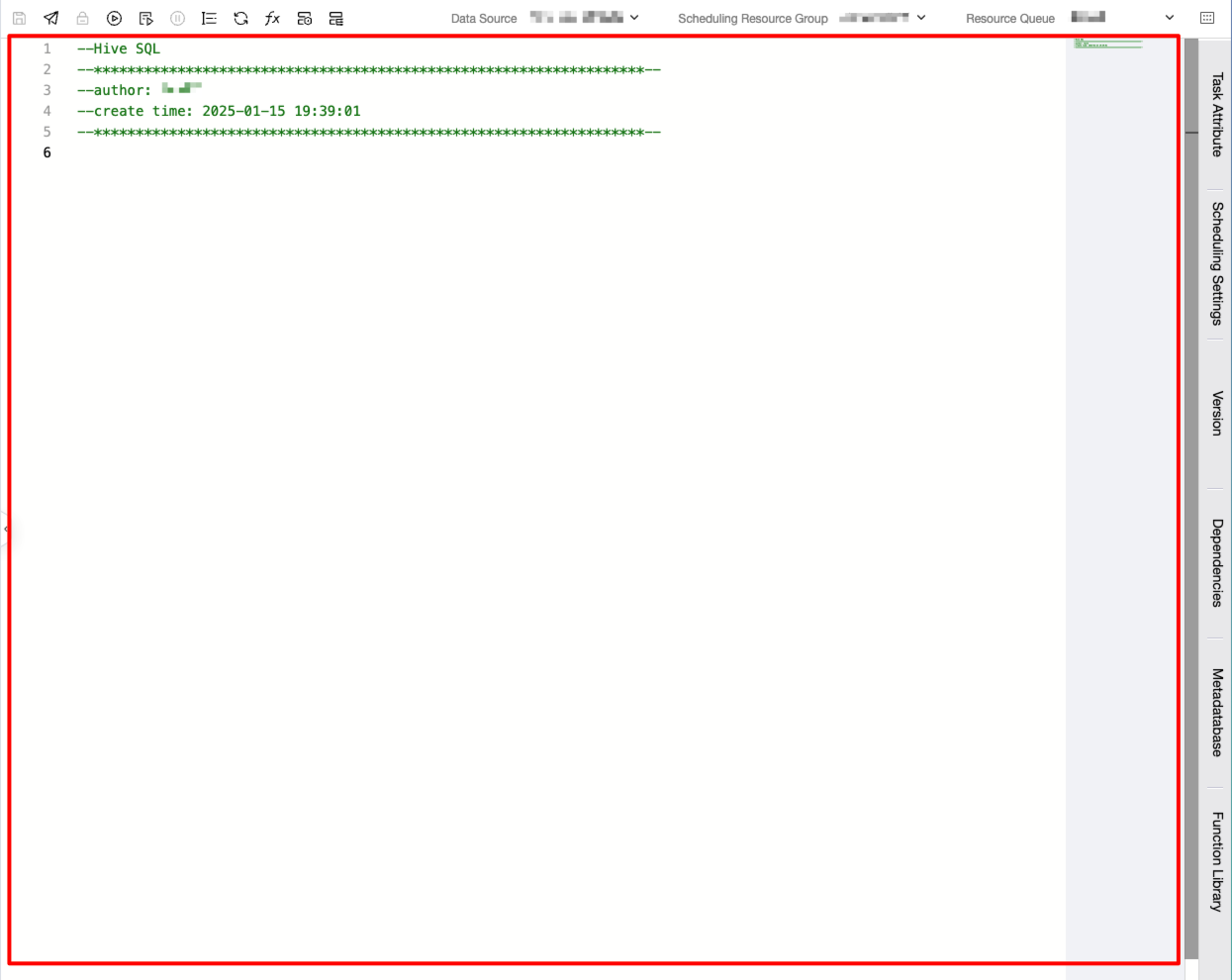 Configure information such as instances/clusters, data sources, and scheduling resource groups.