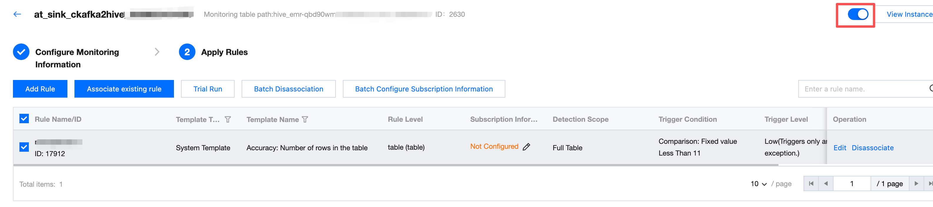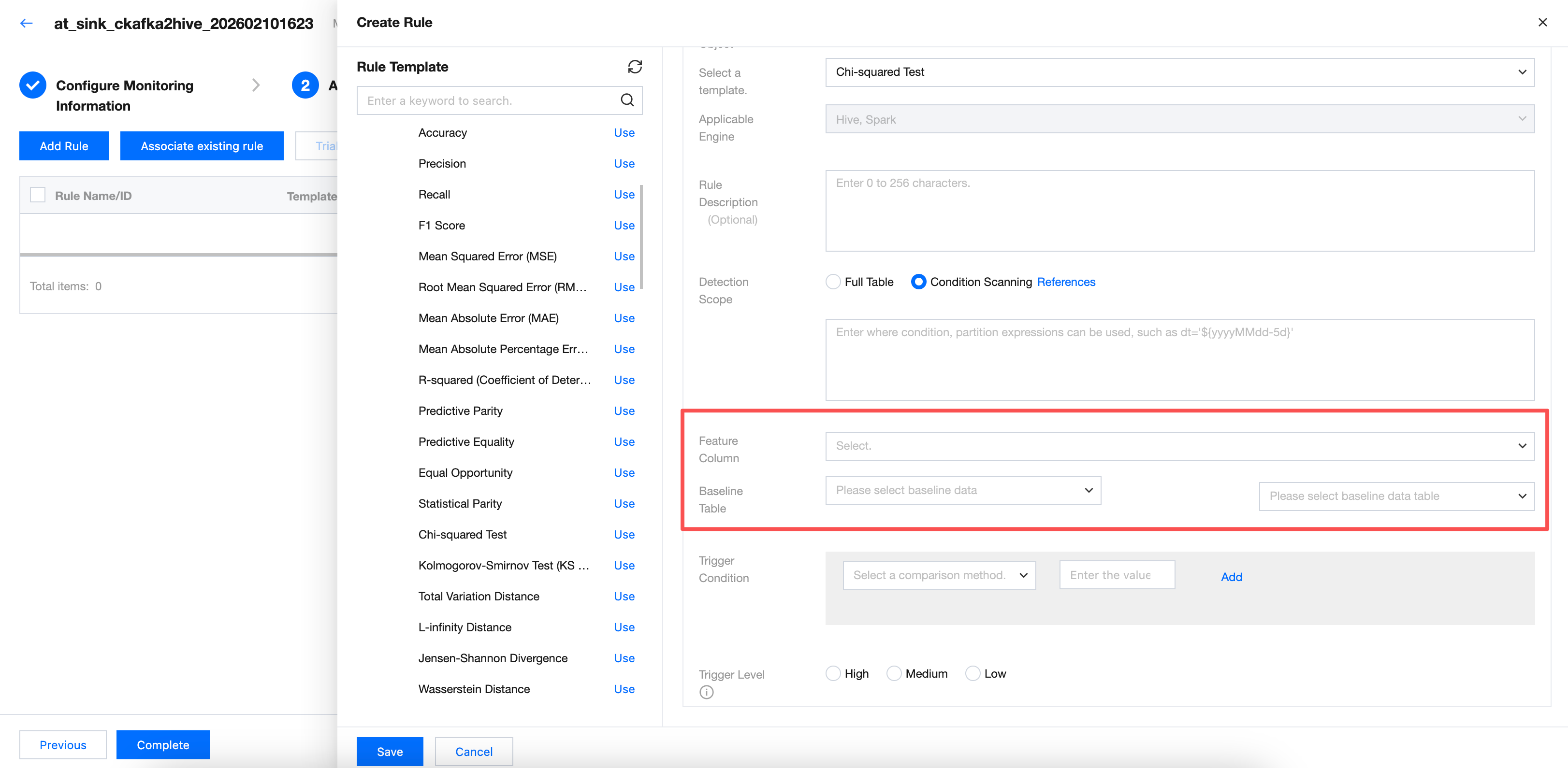 Trigger Level | Select Medium. Trigger Level can be divided into: High, Medium, Low. High: When an alarm is triggered, immediately block downstream task execution (valid only when associated with production tasks). Medium: Trigger alarm only. Low: Do not trigger alarm, only abnormal result display. |