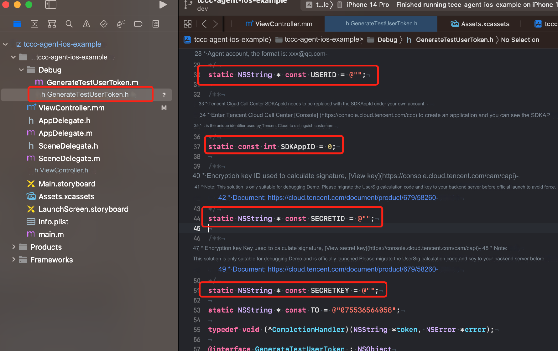 Step 2: Configure Project File 'tccc-agent-ios-example'