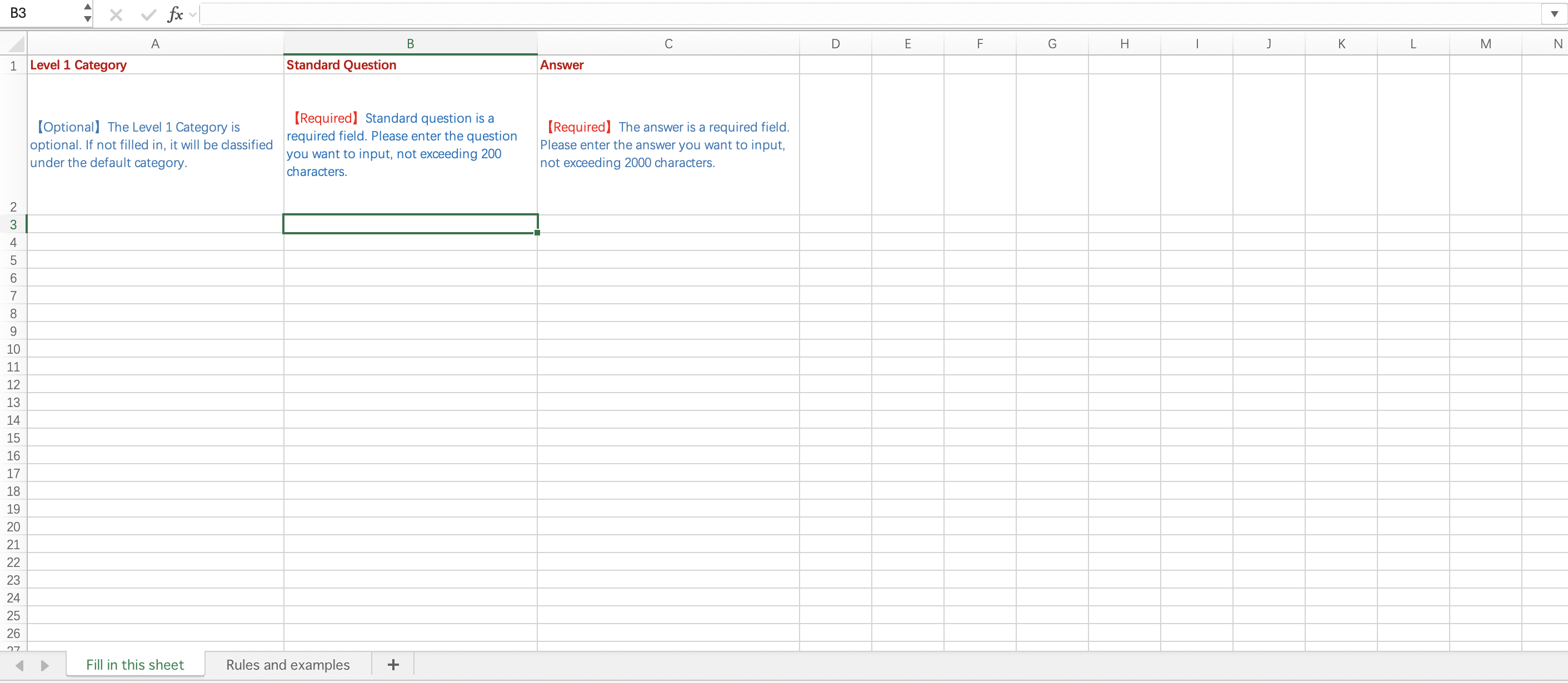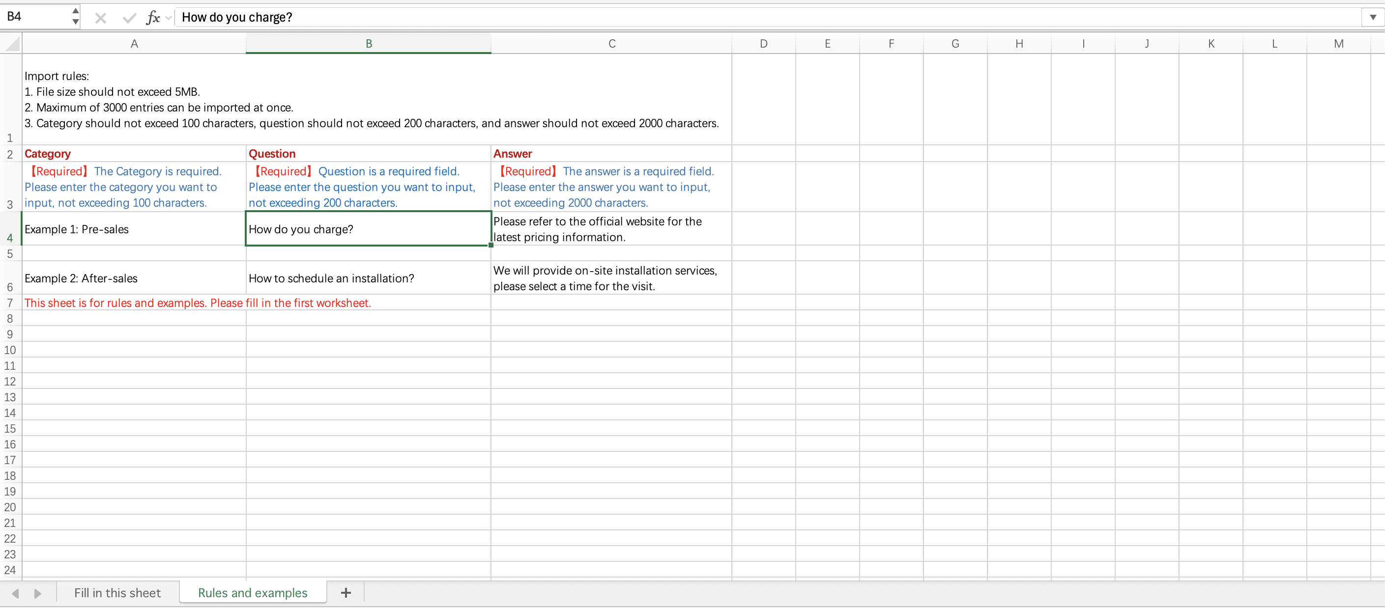 Step 2: Once the download is complete, open the Excel file. The first worksheet is for entering the Q&A, while the second worksheet contains the rules and examples. Follow the instructions to fill in the template accordingly.