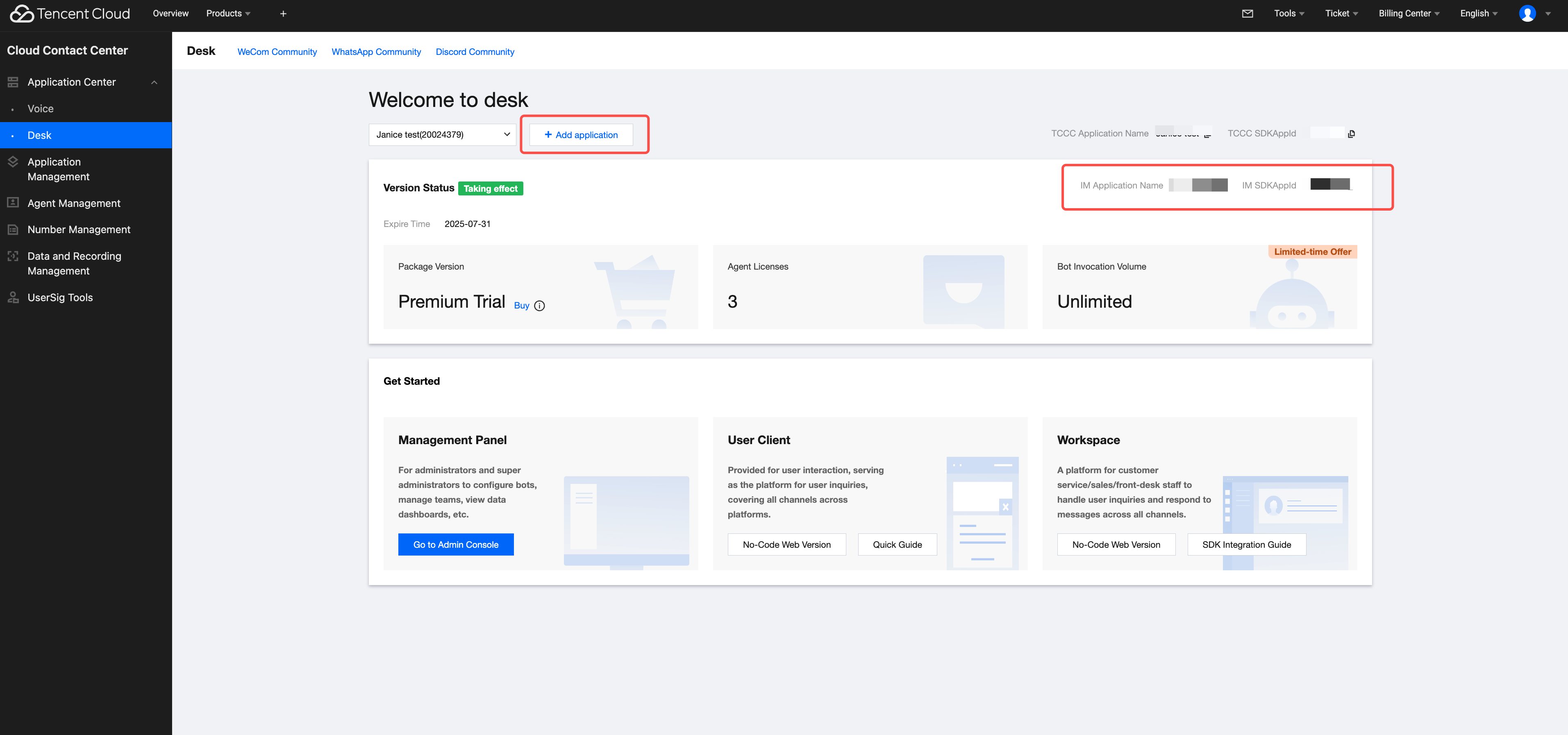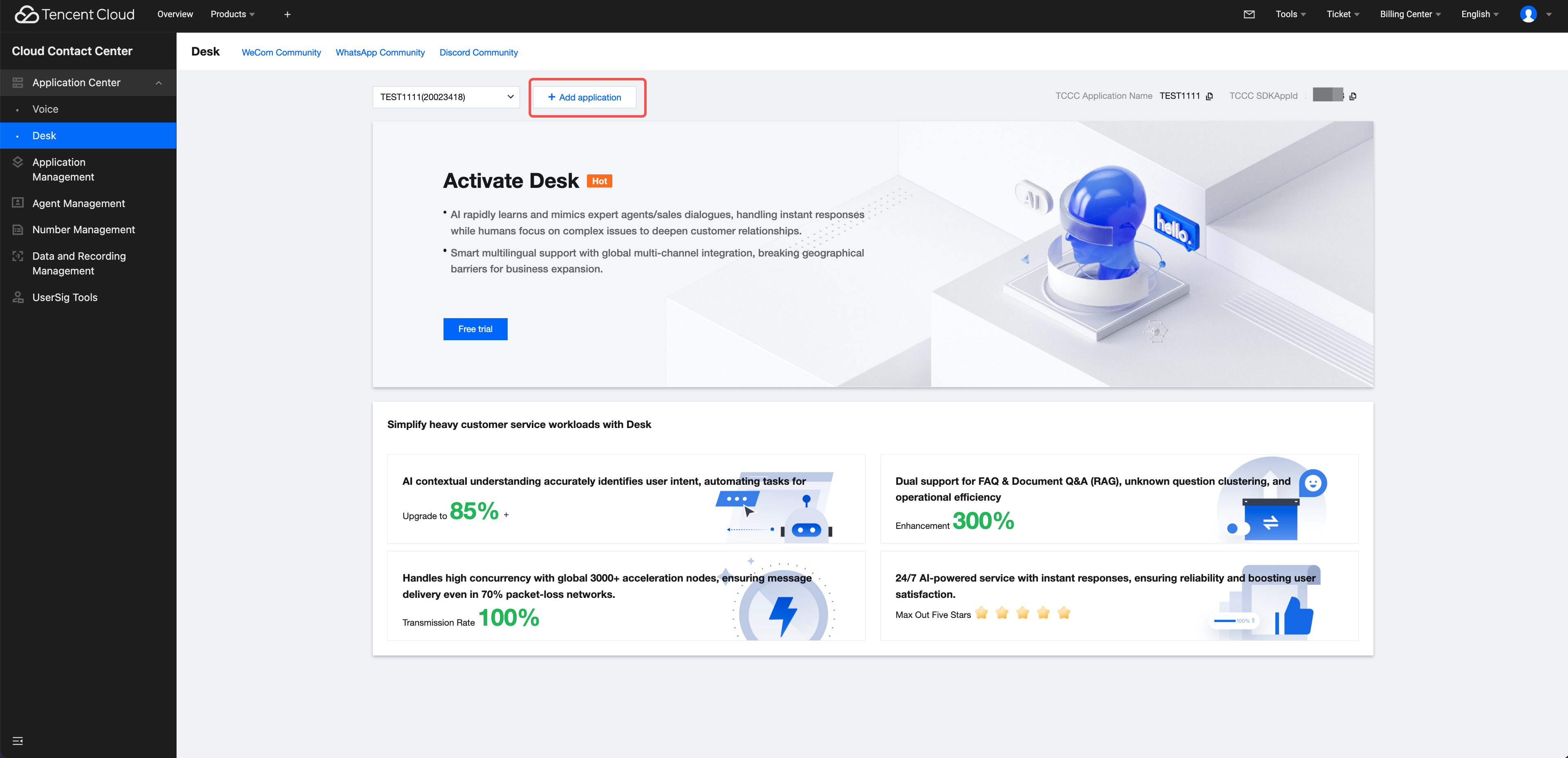 <template><CustomerServiceChat:style="{ width: '600px', height: '80vh', margin: '10px auto', boxShadow: '0 11px 20px #ccc' }"/></template><script setup lang="ts">import TUICustomerServer, { CustomerServiceChat } from './ai-desk-customer-vue';import { onMounted } from "vue";onMounted(() => {const SDKAppID = 0; // Your SDKAppID, the application ID with customer service Desk enabledconst userID = ''; // Your userID, reusable account system of your app or randomly generatedconst userSig = ''; // Your userSig, can be generated by the console during the integration stage, and must be generated by the server during the production stageTUICustomerServer.init(SDKAppID, userID, userSig);});</script><style scoped></style>