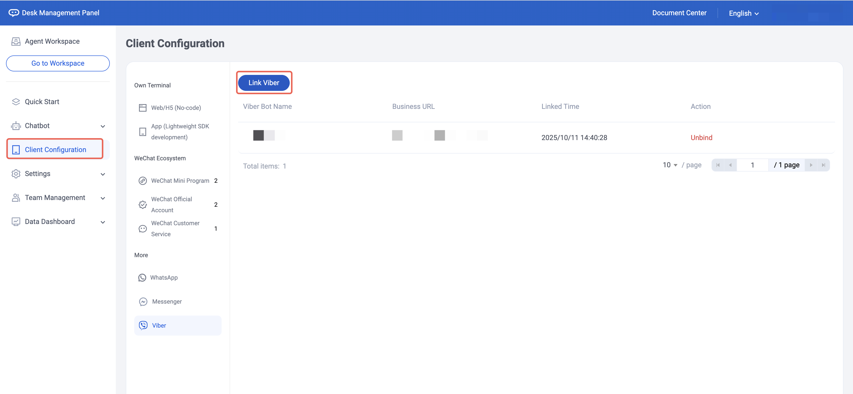 Step 1: Add Viber Message Channel to Desk Management Console
