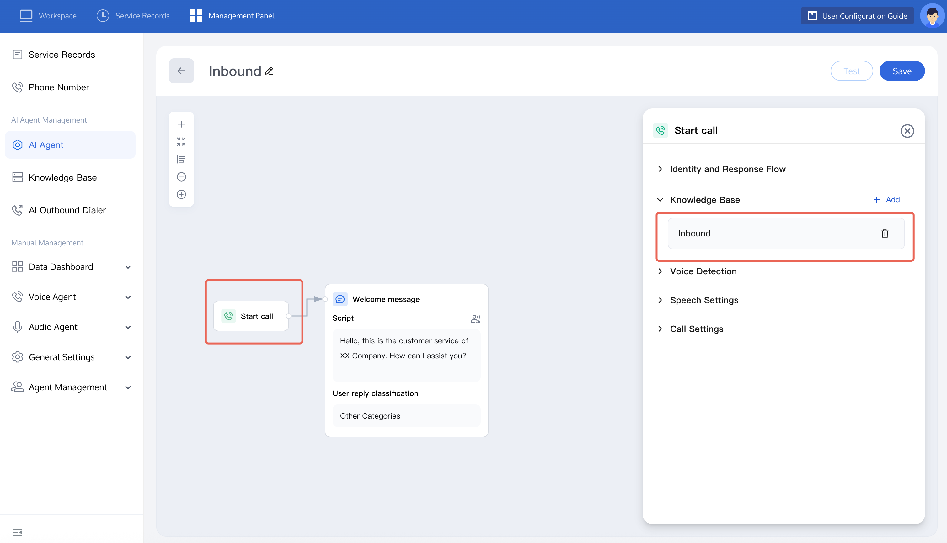 Knowledge base questions: Such problems can be replied by adding a knowledge base. When a user asks a question that hits the knowledge base, the system will reply according to the answer in the knowledge base. For example: ask about the specific content of an activity. You can try to Configure Knowledge Base. After you have configured the relevant knowledge base, just add the knowledge base when starting a call.