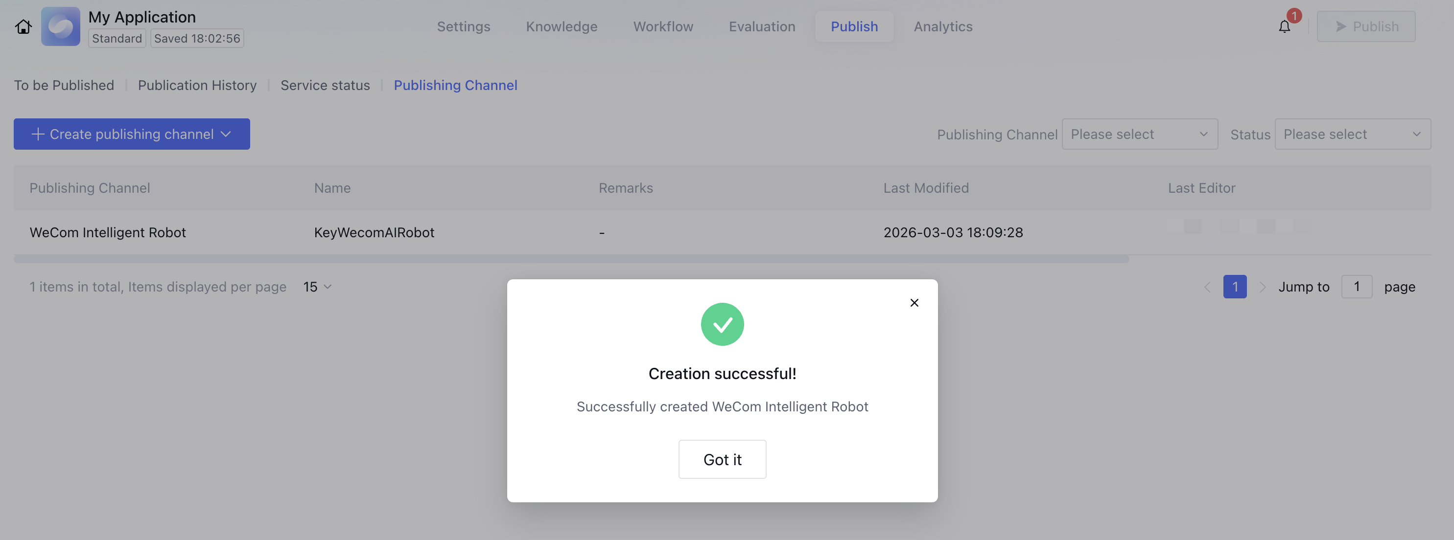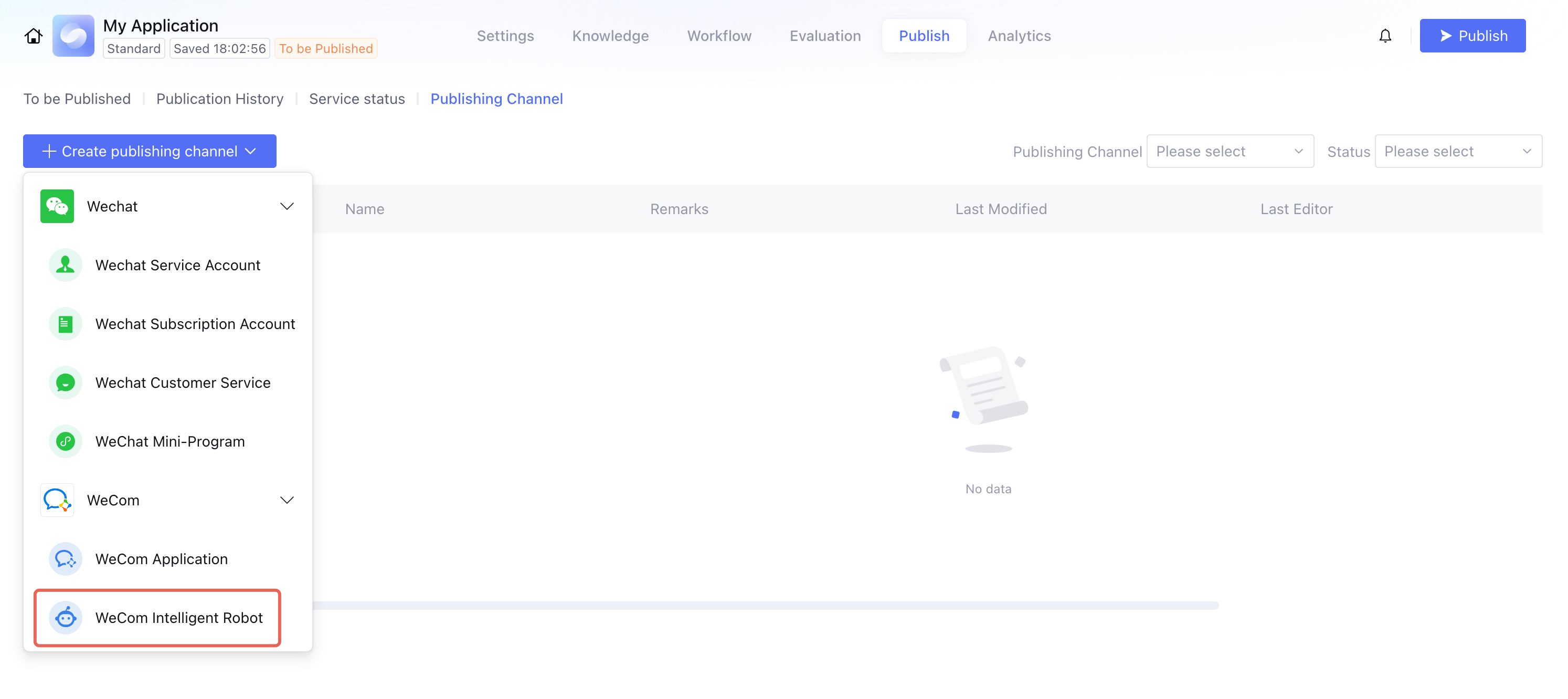 Step 6: Publish the Application in the Intelligent Agent Development Platform