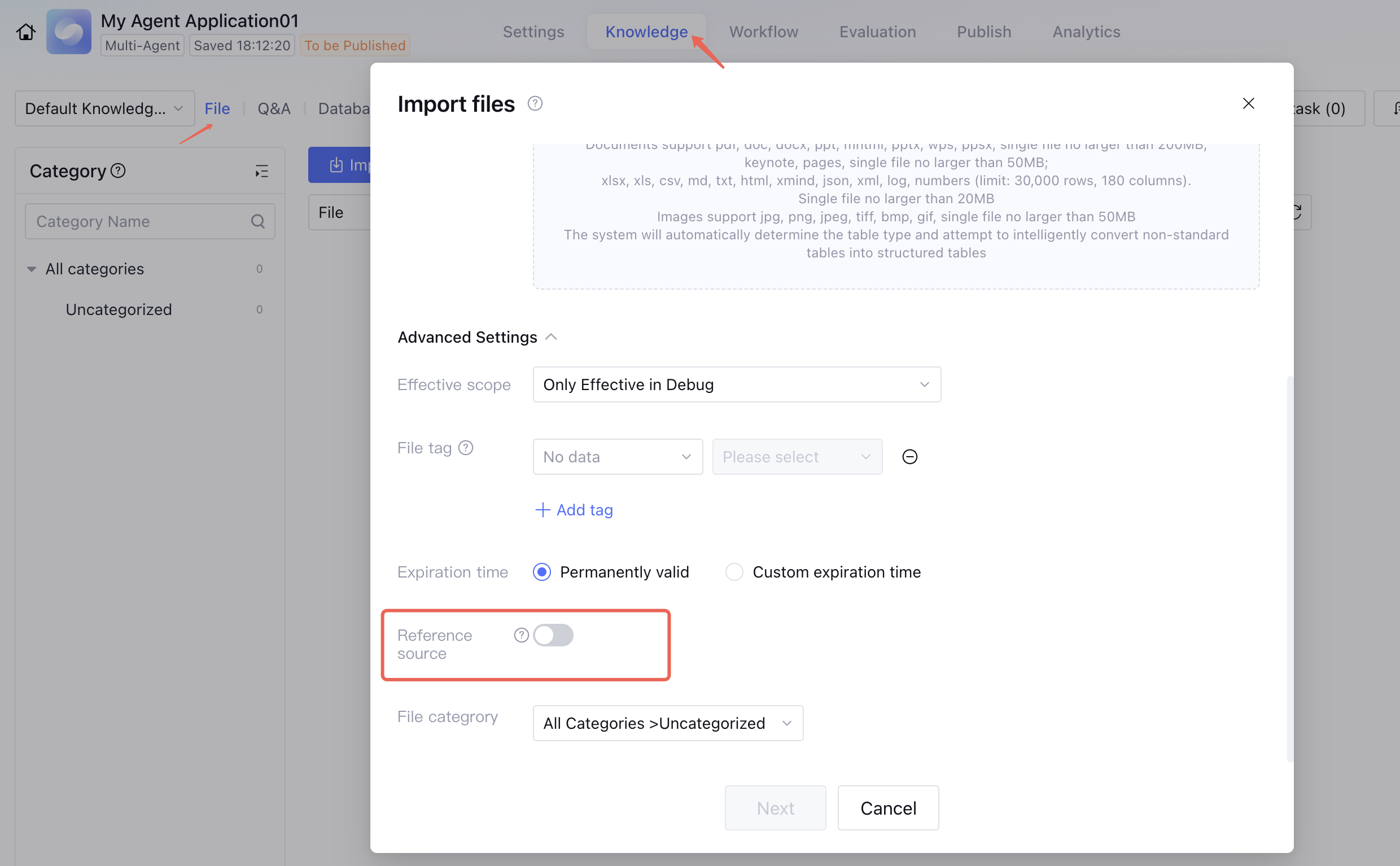 After the Display Reference Sources button is turned on, when the Intelligent Agent matches documents in the knowledge base, the reference sources will be displayed.