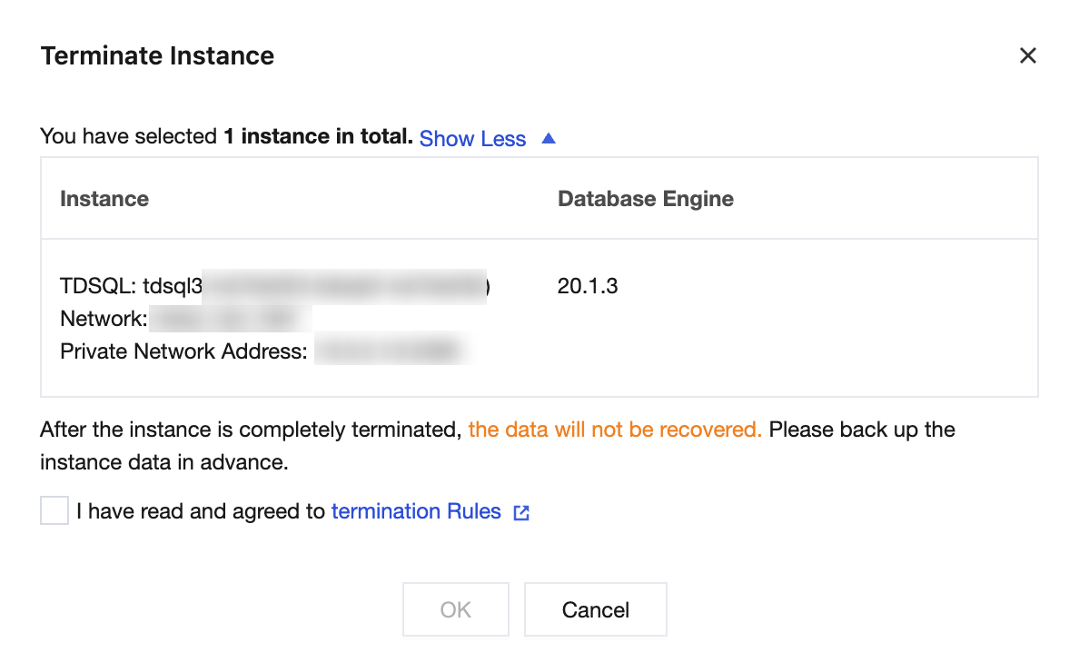 2. In the pop-up dialog box, carefully read and acknowledge the termination rules, then click OK.