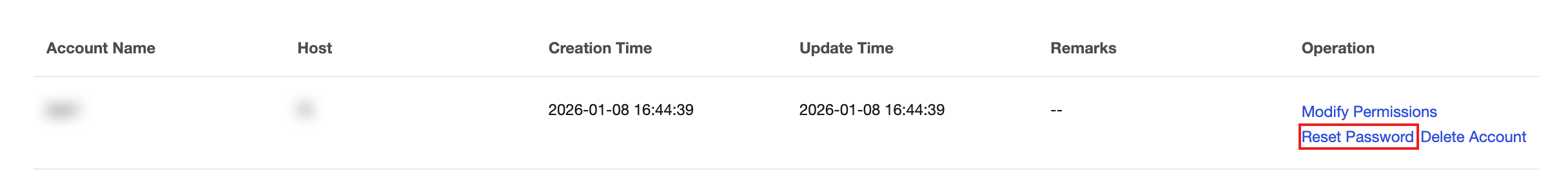 The system supports resetting instance passwords. If you forget your database account password or need to modify it during database usage, you can reset the password via the console.