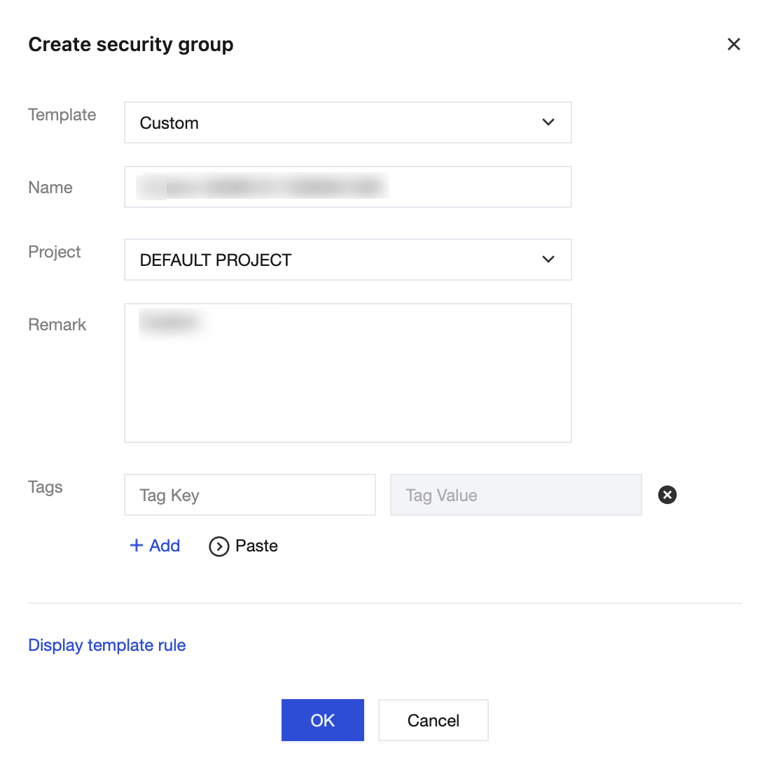 Remark: Custom, and a short description of the security group for easier management.