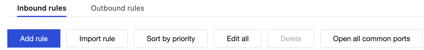 1. On the Security Group page, in the row of the security group that requires rule configuration, click Modify rule in the Operation column. 2. On the Security group rules page, choose Inbound rules > Add rule.