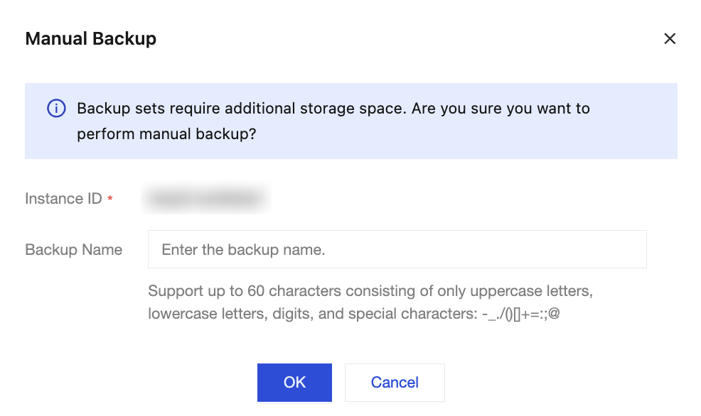 Modify the remark name of a manual backup | On the Data Backup List page, click ![]() |