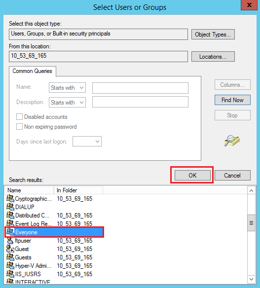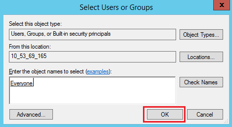 6. 「ユーザーまたはグループの選択」画面で、【OK】をクリックしてEveryoneユーザー追加できます。次の図に示すように: