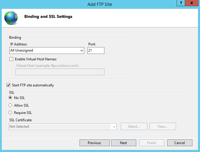 SSL の許可:FTPサーバーによるクライアントとの非SSLおよびSSL接続のサポートを許可します。