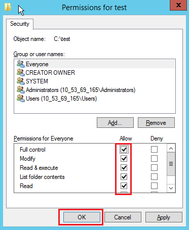 必要に応じてEveryone ユーザーの権限を設定し、【OK】をクリックします。次の図に示すように: