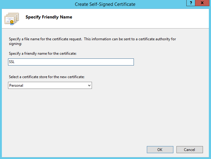 5. 【OK】をクリックして、サーバー証明書を作成します。