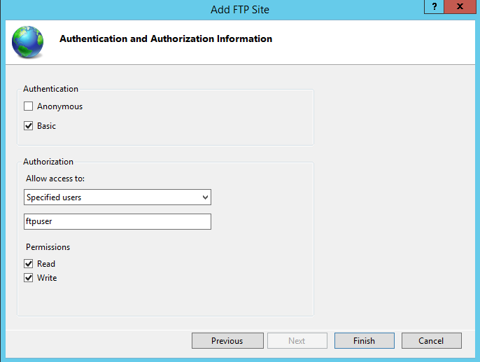 6. 完了をクリックして、 FTP サイトを作成できます。