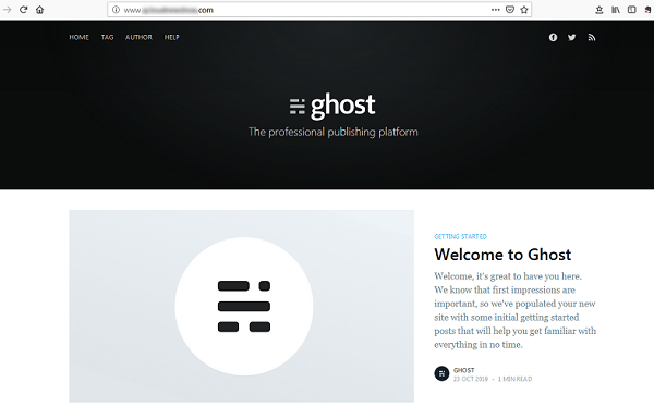 設定完了後、ローカルブラウザを使用して、設定済みのドメイン名www.xxxxxxxx.xxにアクセスすると、個人ブログのトップページを見ることができます。下図に示します。