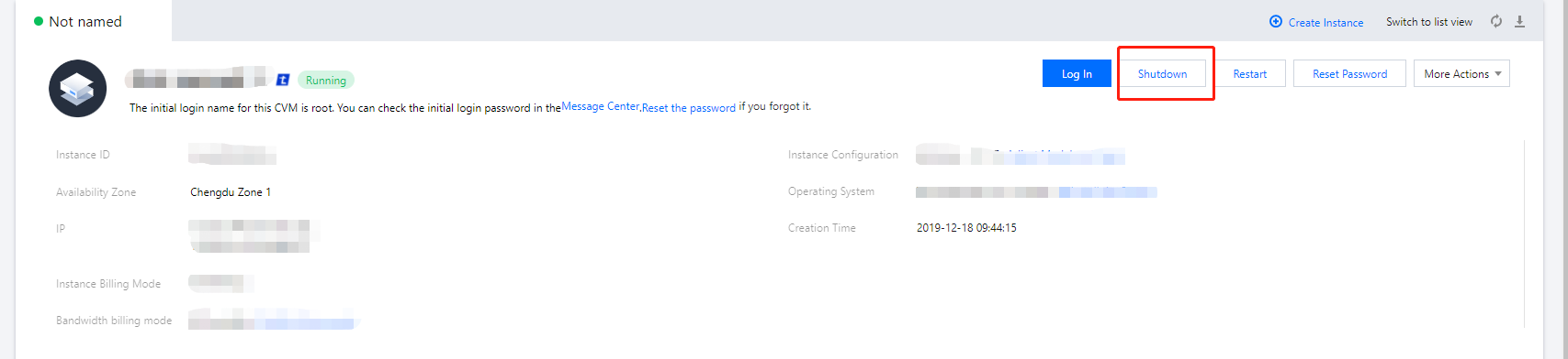 ユーザーはインスタンスサービスを停止する必要がある場合、または構成を変更するためにシャットダウンを実行する必要がある場合、インスタンスをシャットダウンできます。インスタンスをシャットダウンすることはローカルコンピューターのシャットダウンに相当します。