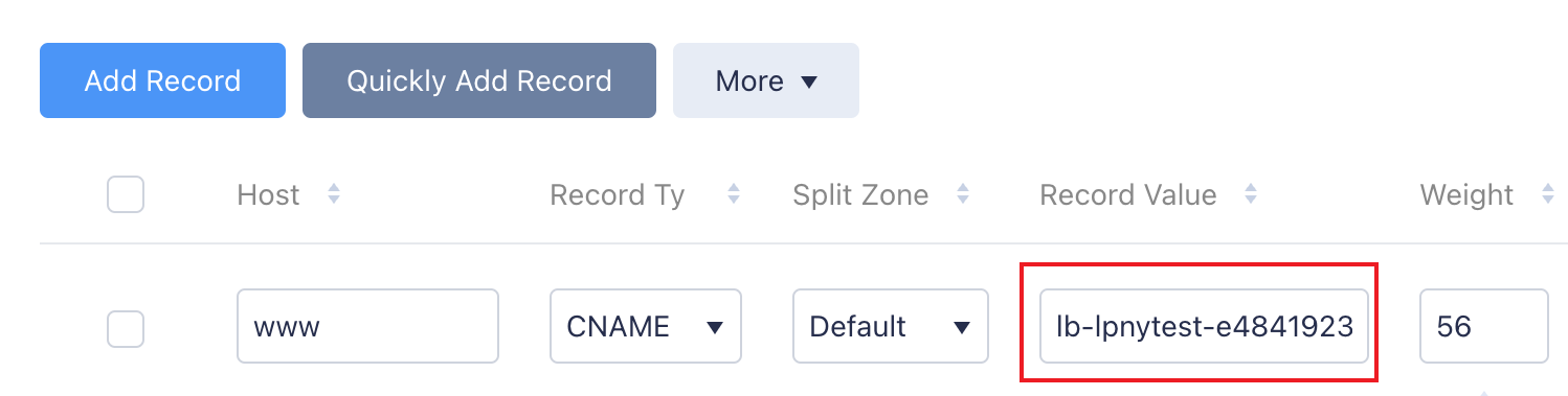 3.5 残りの値はデフォルト値を維持することができます。操作が完了したら、保存をクリックします。 4. レコードの追加が完了すると、レコード管理タブのレコードリストで追加したレコードを確認することができます。 ステップ6:CLBサービスの検証