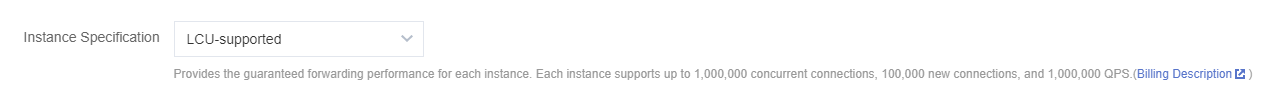 インスタンス仕様 | 共有タイプインスタンスとLCUタイプインスタンスをサポートしています。 共有タイプインスタンスでは複数のインスタンスがリソースを共有し、単一のインスタンスで同時接続数最大5万、1秒あたりの新規接続数5000、1秒あたりの照会数(QPS)5000をサポートしています。 LCUタイプインスタンスはパフォーマンスを保証するもので、互いにリソースを奪い合う共有タイプインスタンスはなく、転送パフォーマンスは他のインスタンスの影響を受けません。単一のインスタンスで同時接続数最大100万、新規接続数10万、1秒あたりの照会数5万をサポートします。 |