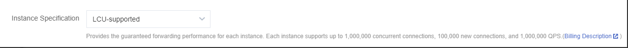 インスタンス仕様 | 共有タイプインスタンスとLCUタイプインスタンスをサポートしています。 共有タイプインスタンスでは複数のインスタンスがリソースを共有し、単一のインスタンスで同時接続数最大5万、1秒あたりの新規接続数5000、1秒あたりの照会数(QPS)5000をサポートしています。 LCUタイプインスタンスはパフォーマンスを保証するもので、互いにリソースを奪い合う共有タイプインスタンスはなく、転送パフォーマンスは他のインスタンスの影響を受けません。単一のインスタンスで同時接続数最大100万、新規接続数10万、1秒あたりの照会数5万をサポートできます。現在、LCUタイプインスタンスはベータ版テスト中です。ご利用を希望される場合は、チケット申請を提出してください。 |