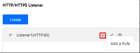 転送ルール:1つのリスナーには複数のドメイン名を設定することができ、1つのドメイン名には複数のURLパスを設定することができます。リスナーまたはドメイン名を選択し、+をクリックすると、新しいルールが作成されます。