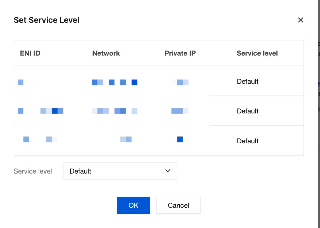 5. Select multiple ENIs for which you want to set the same QoS level, and click Set QoS Level above the list.