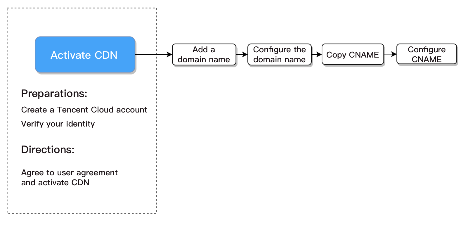 CDNサービスをアクティブにした後、アクセラレーションサービスのドメイン名をTencent Cloud CDNに接続する必要があります。ユーザーはドメイン名にアクセスして、アクセラレーション効果を得ることができます。詳細については、ドメイン名へのアクセスをご参照ください。 CNAMEの設定