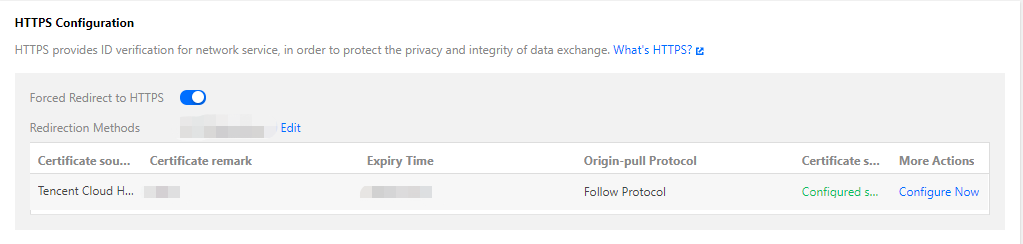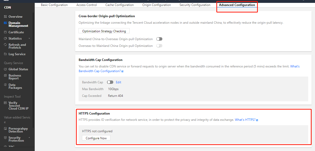 Tencent Cloud CDNは現在、HTTPS設定を完全にサポートしています。ユーザーは自分の証明書をアップロードしてデプロイするか、または 証明書管理コンソール にアクセスしてTrustAsiaが無料で提供するサードパーティの証明書を申請することができます。