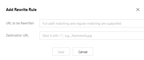 書き換え予定のURL:「/」で始まり、フルパス一致(例:/test/a.jpg)とワイルドカード *一致(例:/test/*/*.jpg)をサポートします。ファイルディレクトリを指定する場合は、「/」で終わることはできません(例:/test)。