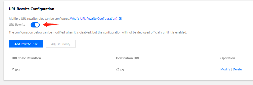 実際のアクセスURLをオリジンサーバーと一致するURLに変更する必要がある場合、Tencent Cloud CDNはアクセスURL書き換え設定機能を提供しています。