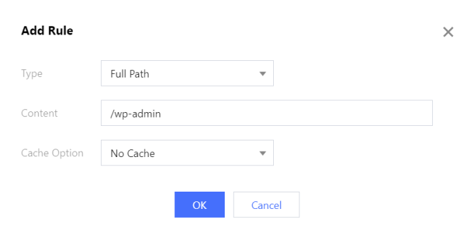 サイトへのログイン(wordpressバックグランドから/wp-adminにアクセスするなど)やインターフェース検索などオリジンサーバーと直接通信する必要がある他のリクエストの場合、キャッシュを格納しないことを設定しなければなりません。そうしないと、アクセスエラーが発生する可能性があります。