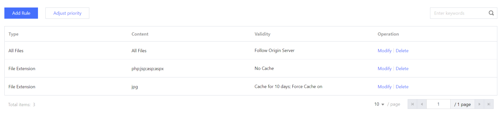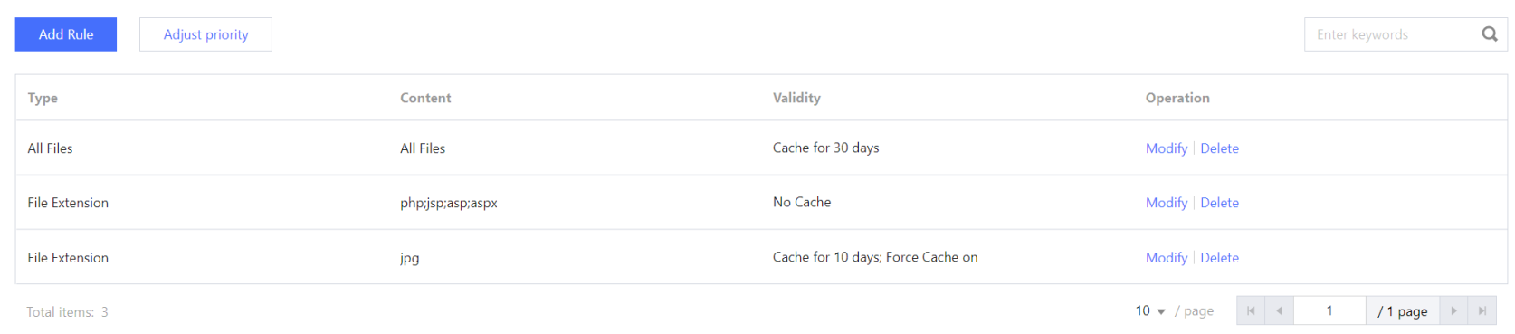 ノードのキャッシュの有効期限の設定を利用すれば、CDNノードにキャッシュされたオリジンサーバーのリソースの有効期限を設定し、CDNノードにキャッシュされたオリジンサーバーのリソースを更新する頻度を調整することができます。業務ニーズに応じて、ディレクトリ、ファイルの拡張子、ファイルのフルパスでキャッシュするリソースの有効期限を設定することができます。