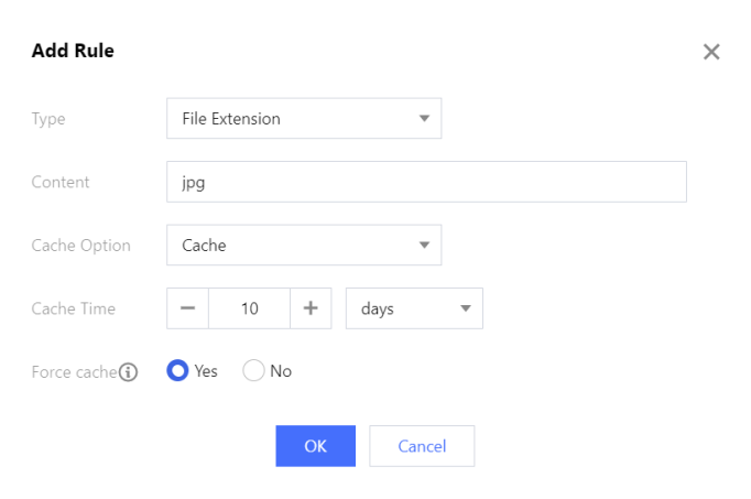 拡張子がhtml;js;cssのファイルは頻繁に更新されるため、更新頻度に応じてキャッシュの有効期限を設定してください。キャッシュの有効期限に7日を設定し、強制キャッシュを無効にすることをお勧めします。