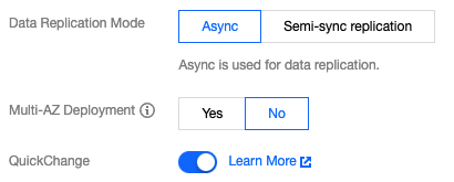 調整と設定の変更完了時に、インスタンスの切り替え(MySQLデータベースの接続が数秒間切断されること)が発生することがあります。プログラムの自動再接続機能を有効にし、インスタンスのメンテナンス可能時間を選択して切り替え実行することをお勧めします。インスタンスのメンテナンス時間設定をご参照ください。 MySQL単一ノード - 基本型は、設定の調整中に、約15分間のインスタンス利用不可の状態があります。業務が落ち着いたタイミングで操作することをお勧めします。