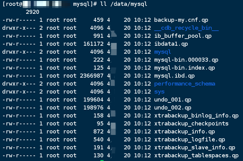 /data/mysqlはこの前バックアップファイルを保存するターゲットディレクトリです。必要に応じて実際のパスで置き換えてください。