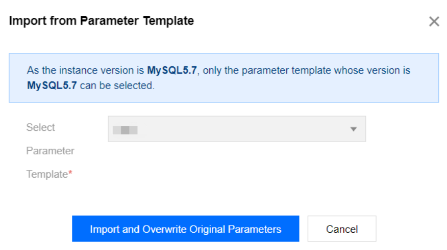 メンテナンス時間帯を選択すると、選択したインスタンスのパラメータ変更タスクがインスタンスのメンテナンス時間帯に実行され、有効になります。 方法3:パラメータテンプレートページからインポートする
