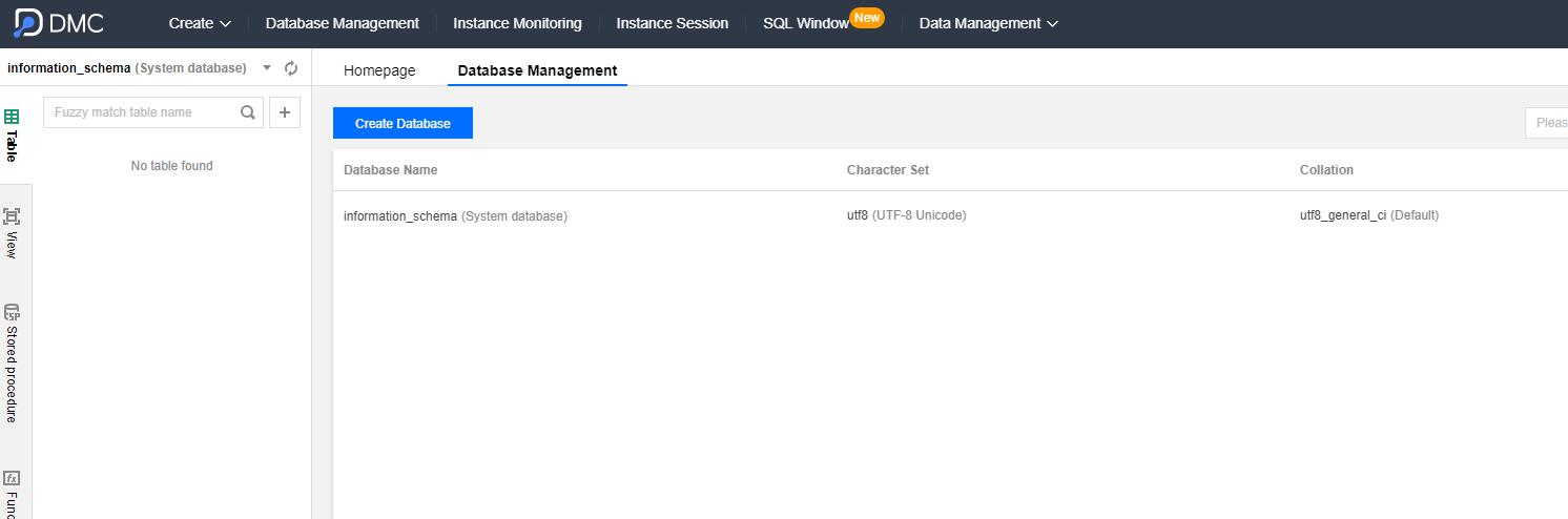 ここでは主に、DMCコンソールでのデータベーステーブルの新規作成、ライブラリ管理、インスタンス監視、インスタンスセッション、テーブルデータの視覚化編集などの機能について紹介します。