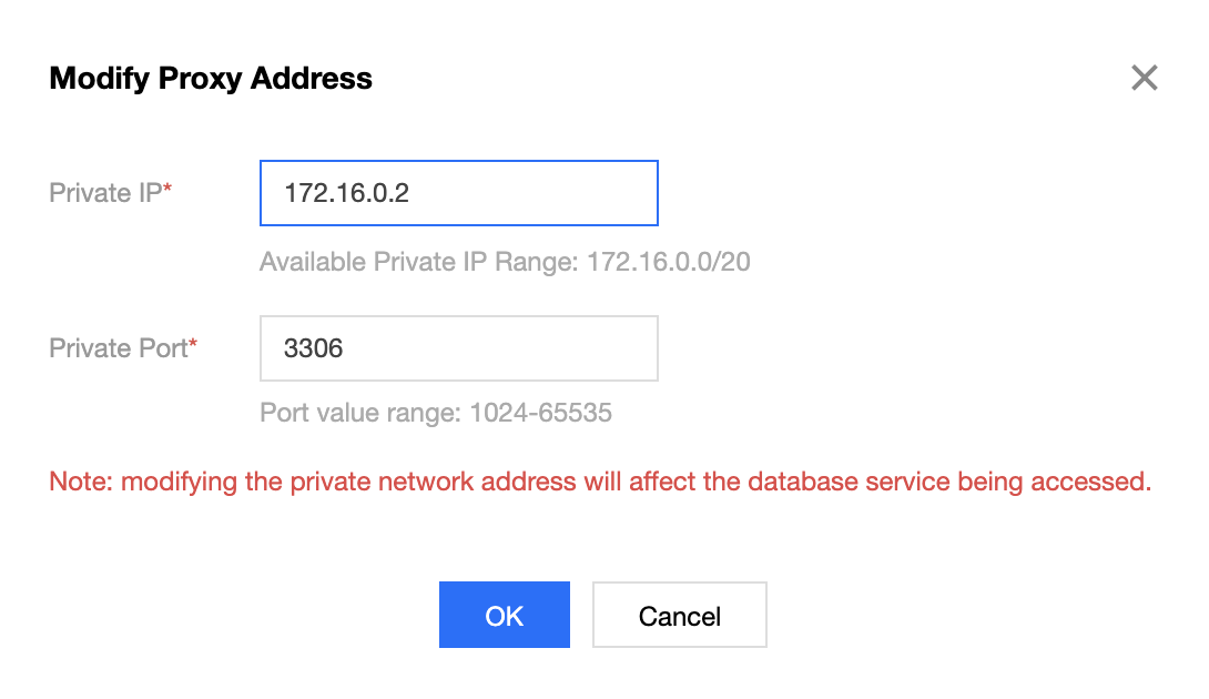 ネットワーク | データベースプロキシのネットワークを選択します。Virtual Private Cloud(VPC)のみサポートします。IPの自動アサインまたはIPの指定を選択することをサポートします。 |