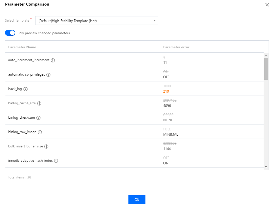 差分パラメータ名 | デフォルトテンプレート | 高性能パラメータテンプレート | 高テンプレート |