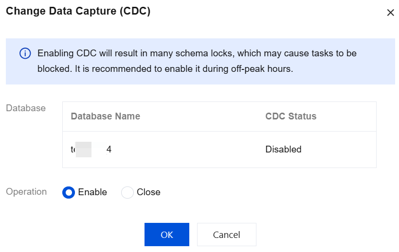 This document introduces operation practices for enabling and disabling the database-level and table-level CDC feature.
