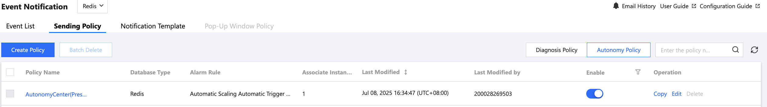 5.2 After the event notification configuration is saved successfully, the policy list will show the newly created autonomy policy and enable it by default.
