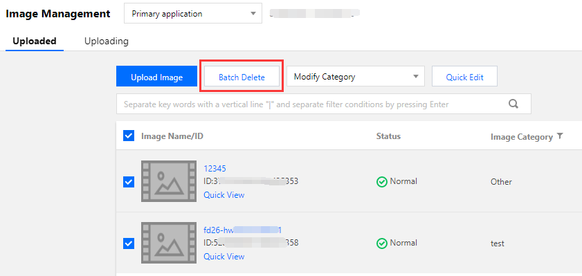 削除操作を実行すると、画像はTencent Cloudから完全に削除され、__回復できません__。また、CDNノードからその画像にアクセスすることもできませんので、操作は慎重に行ってください。