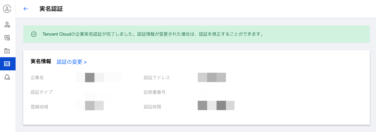 本ガイドでは、個人または企業実名認証が完了しているTencent Cloudアカウントの実名認証情報を変更する方法を説明します。実名認証情報はアカウントの帰属を決定します。アカウントの実名認証完了後、認証情報を適当に変更することはお勧めしません。