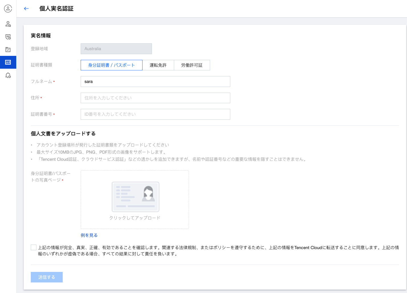3. 完了後、送信するをクリックしてください。実名申請を提出した後、担当者は2~4営業日以内に審査を完了します。審査結果はサイト内メッセージ、メール、およびSMSでお知らせします。